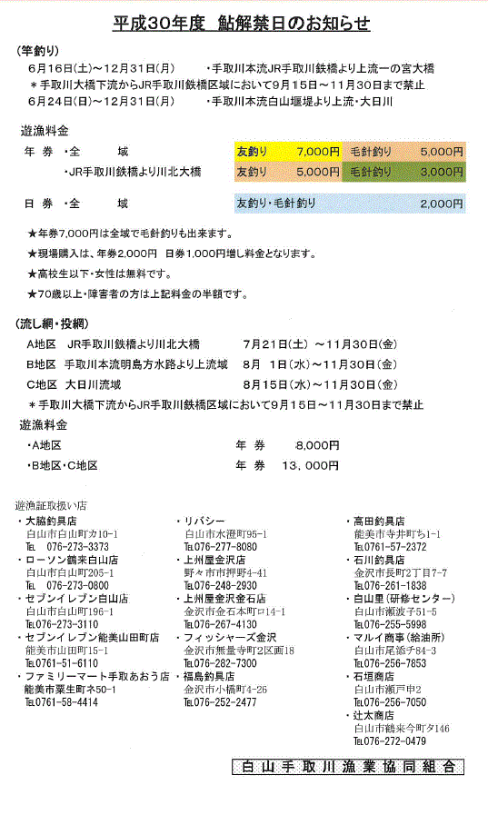 平成29年度よりこれまで無料だった川北大橋からJR手取川橋梁間が
